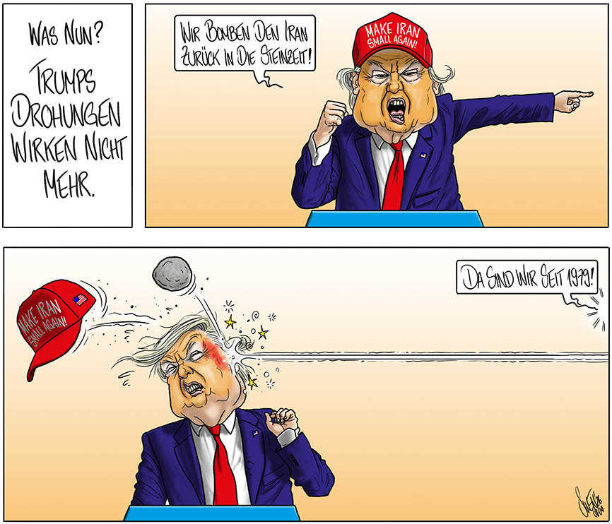 Der kleine Donald droht Europa und der NATO. «Wir werden den Wert der Nato und dieses Bündnisses für unser Land neu prüfen müssen», sagte US-Aussenminister Marco Rubio in einem Interview des Senders Fox News. Beide spielten damit darauf an, dass europäische Nato-Partner bislang eine aktive Unterstützung des Iran-Kriegs verweigern.